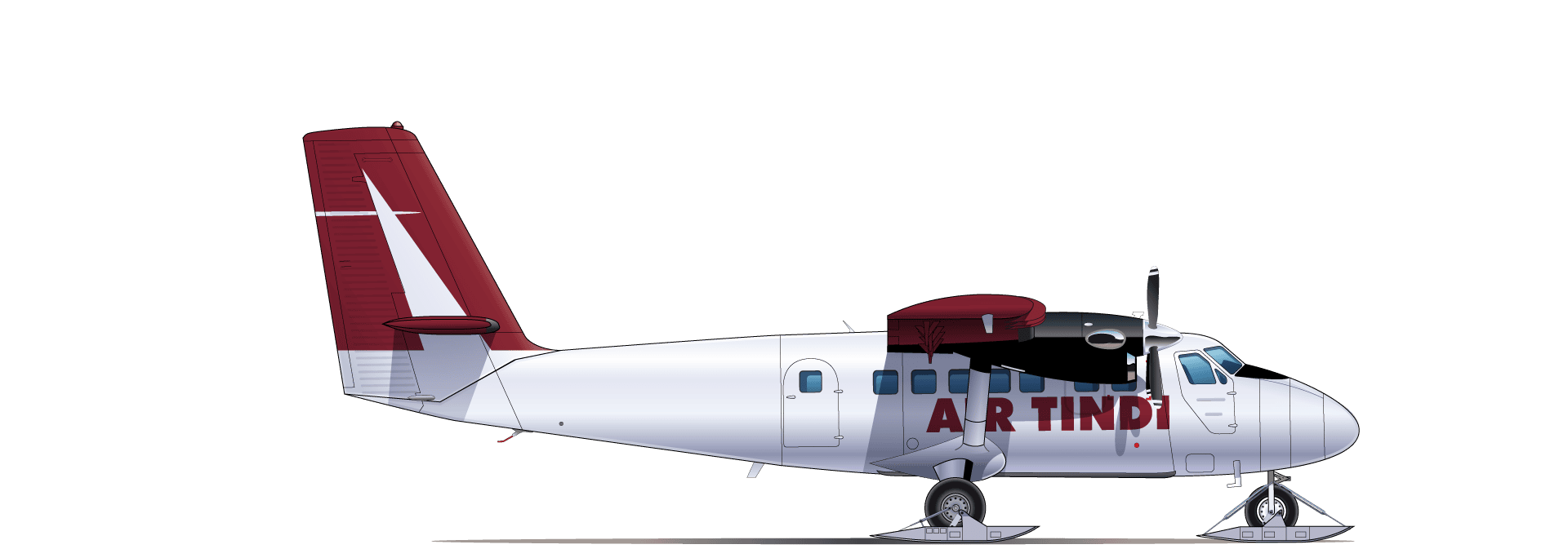 The Twin Otter is a versatile passenger/cargo aircraft. This multi-purpose, twin-engine, high-wing aircraft can easily be converted from an all-cargo configuration to seating for 17 passengers, or to a combination of both. Capable of safe operation on floats, skis, wheel-skis, wheels, and tundra tires, it can access short, unprepared strips and lakes, providing large-capacity airplane service to highly remote locations. Air Tindi operates six Twin Otters.